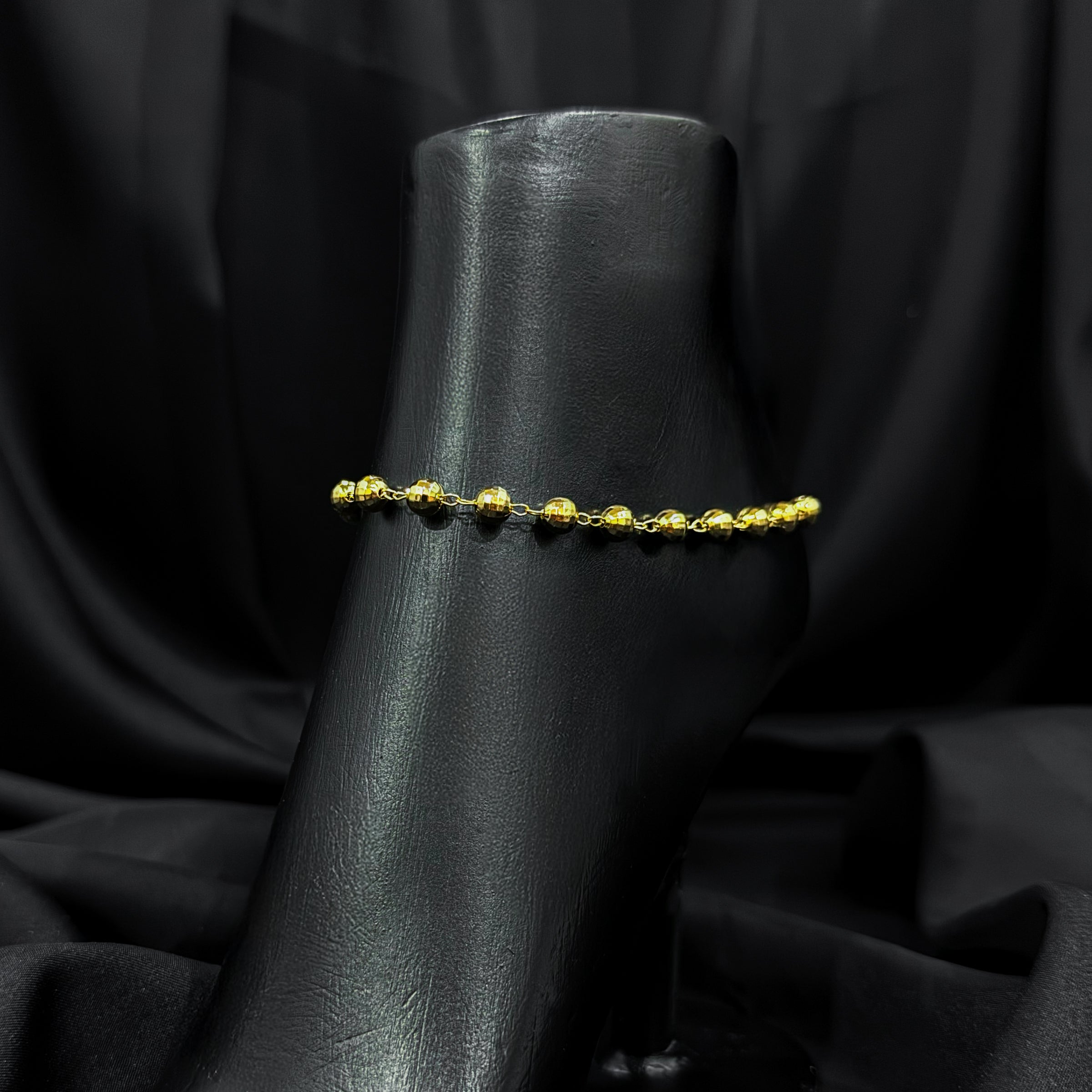 Elevate your ankle game with this alluring charm anklet crafted from embellished metal. Perfect for adding a touch of whimsy to any outfit, this piece exudes charm and sophistication. Make a statement with this stunning anklet that effortlessly combines elegance and trendiness. Perfect for the modern woman who loves to accessorize.
