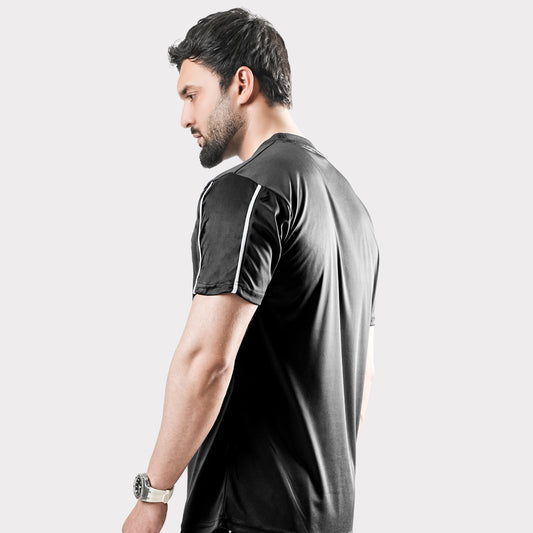 Charcoal Quick Dry T-Shirt with Front white Stripes