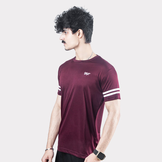 Maroon Quick Dry T-Shirt with White Dual Arm Stripes