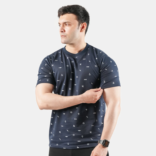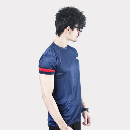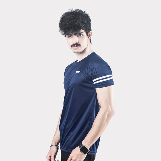 Navy Quick Dry T-Shirt with White Dual Arm Stripes