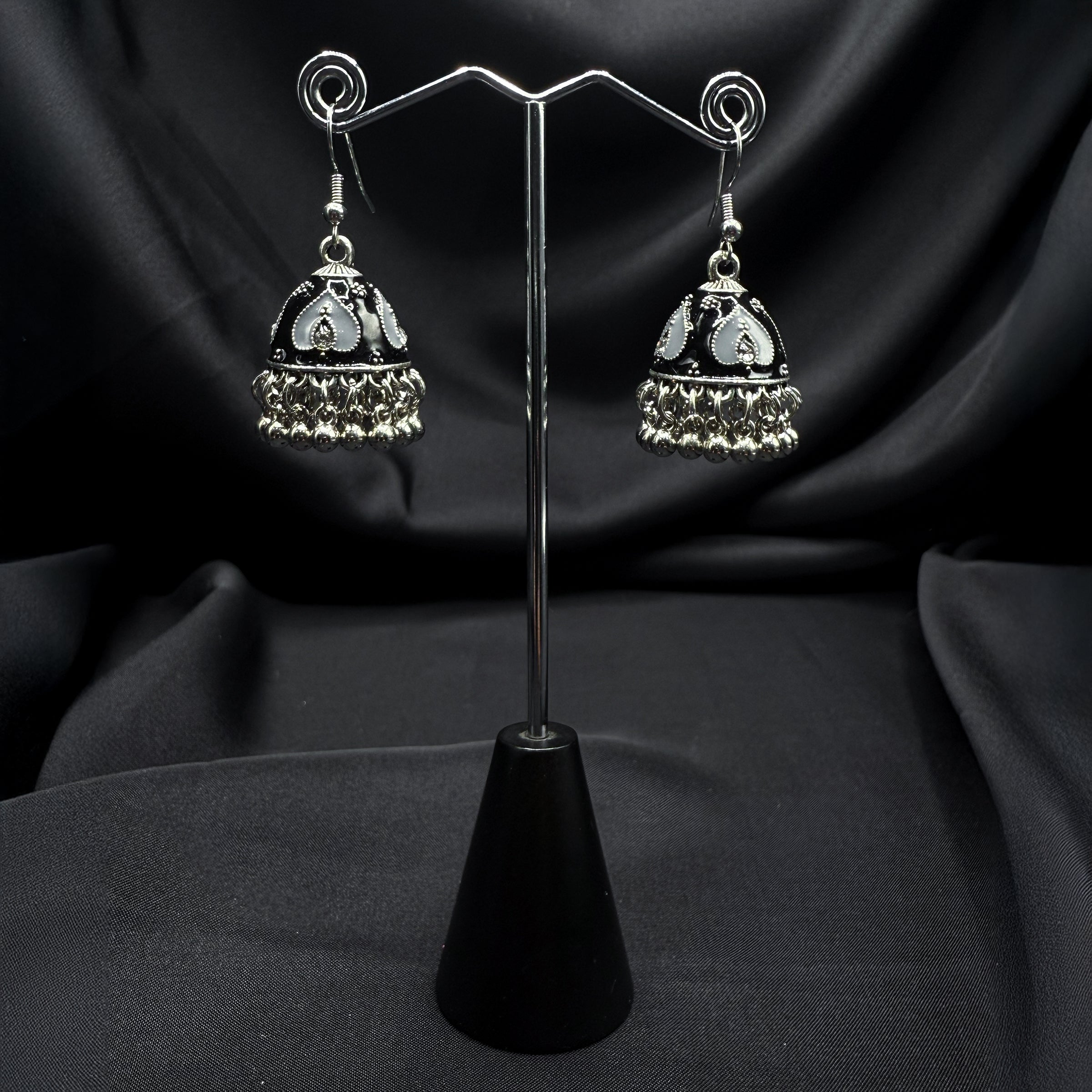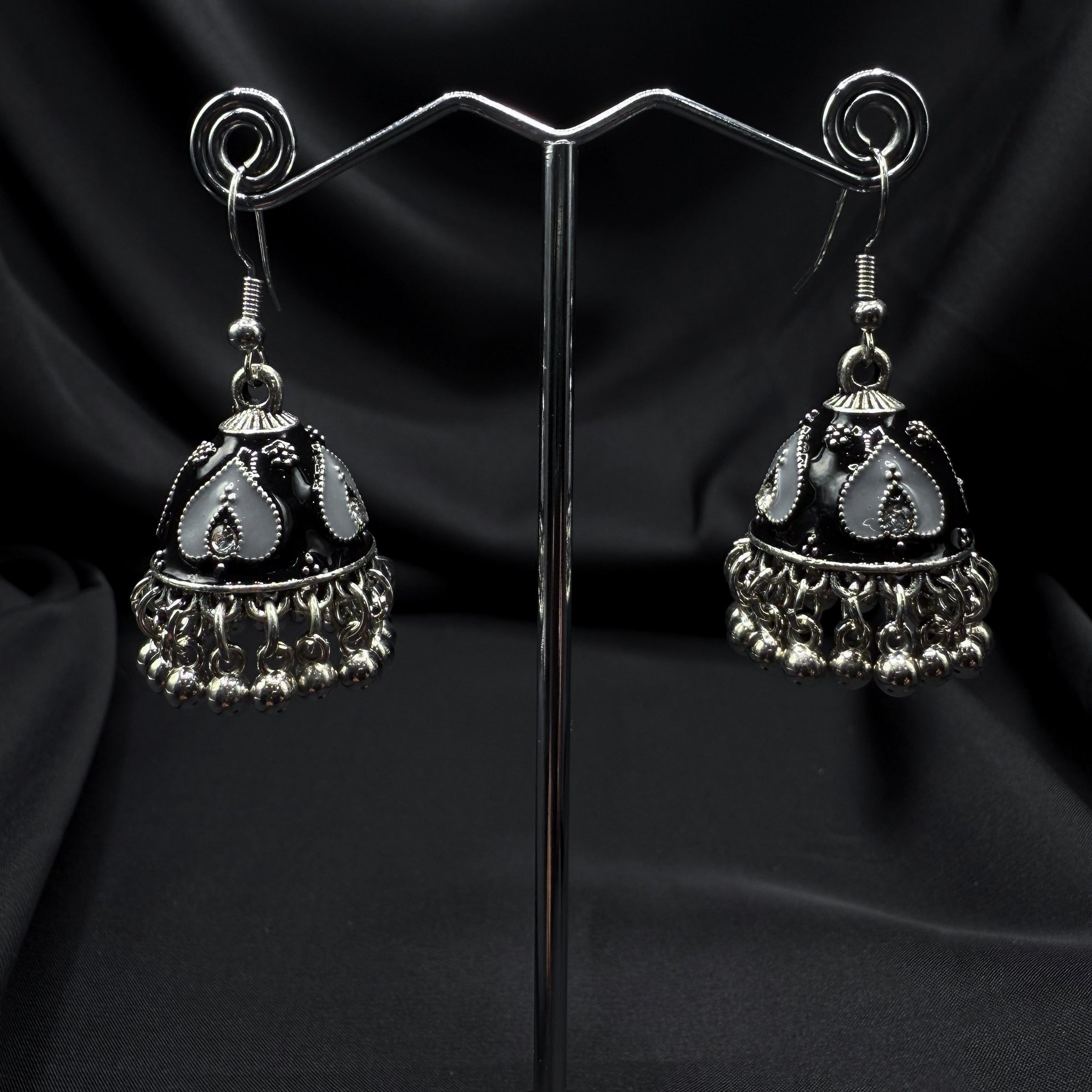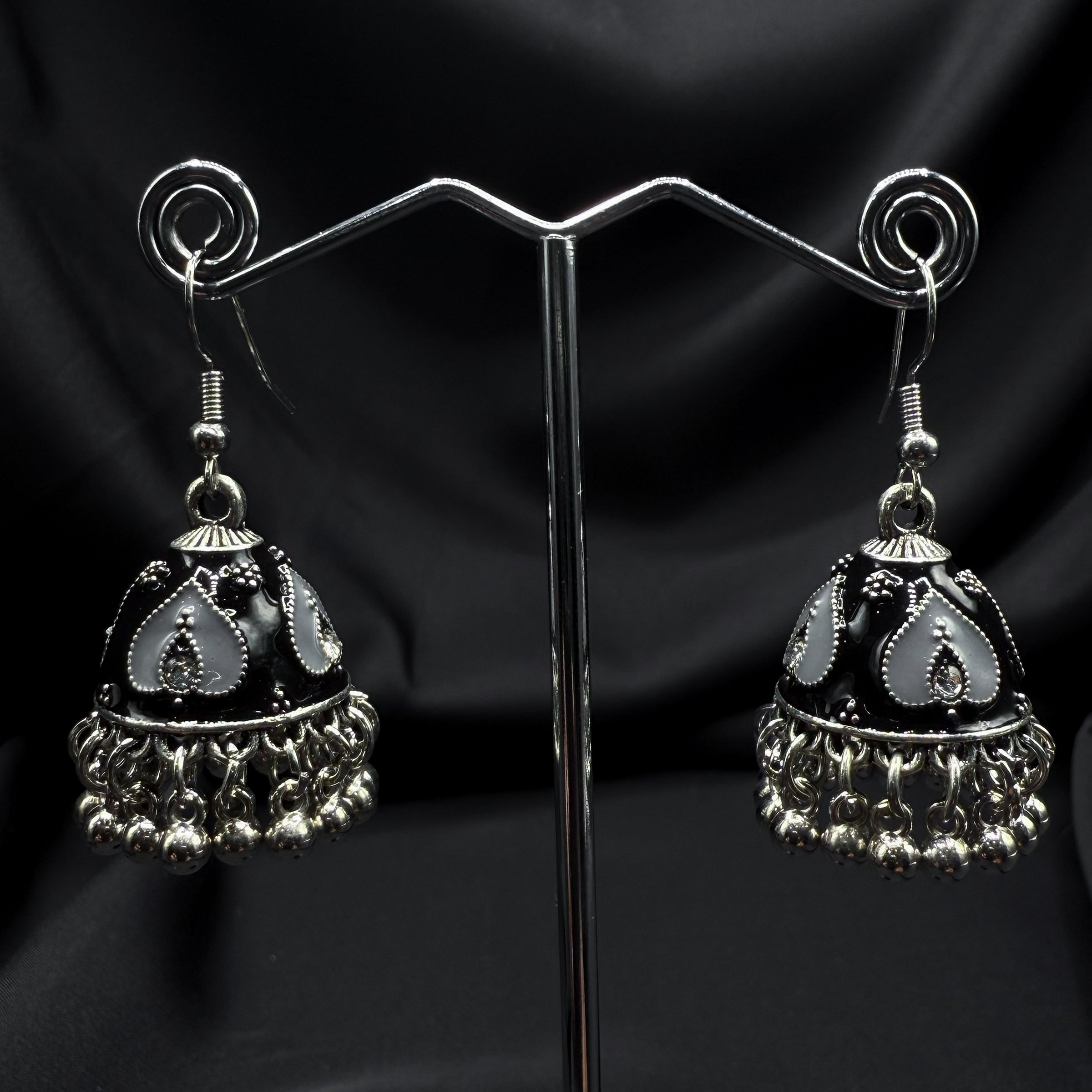 Elevate your accessory game with these striking Women's Jhumka Earrings by Wear To Fit. Crafted with a sleek silver coating, these statement pieces exude elegance and charm. The black color adds a touch of mystery and sophistication. Each pack contains 2 pieces, perfect for adding a bold and trendy touch to any outfit.