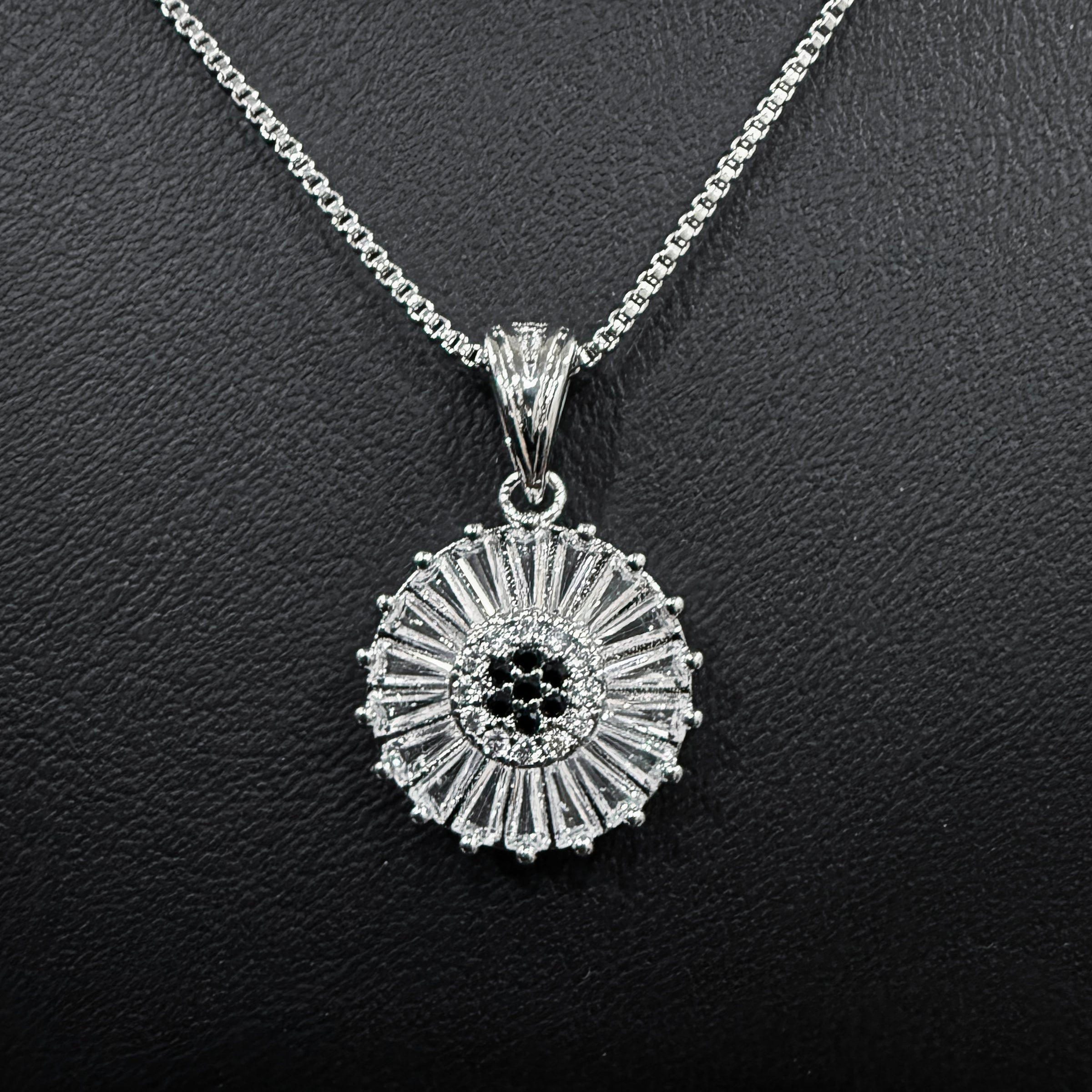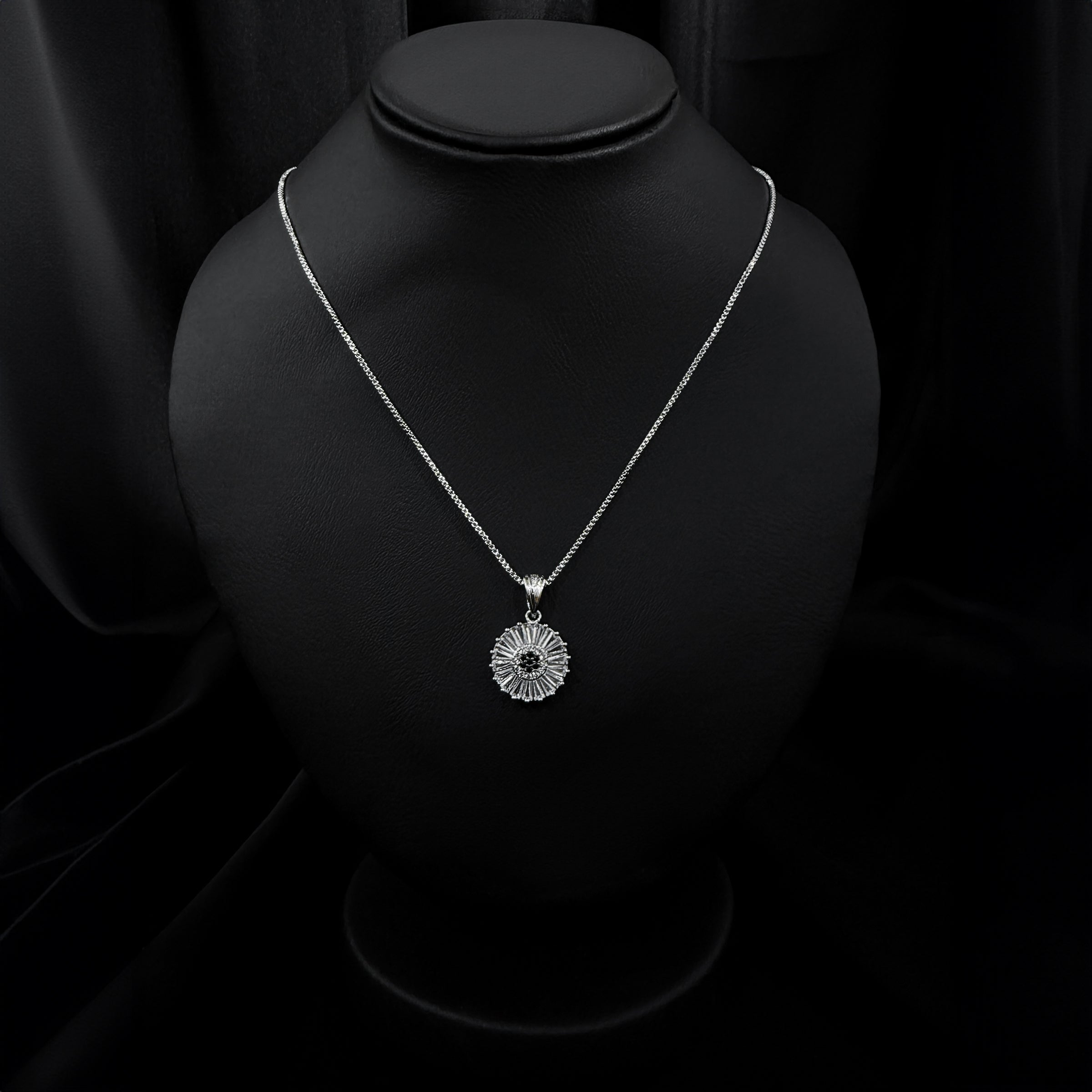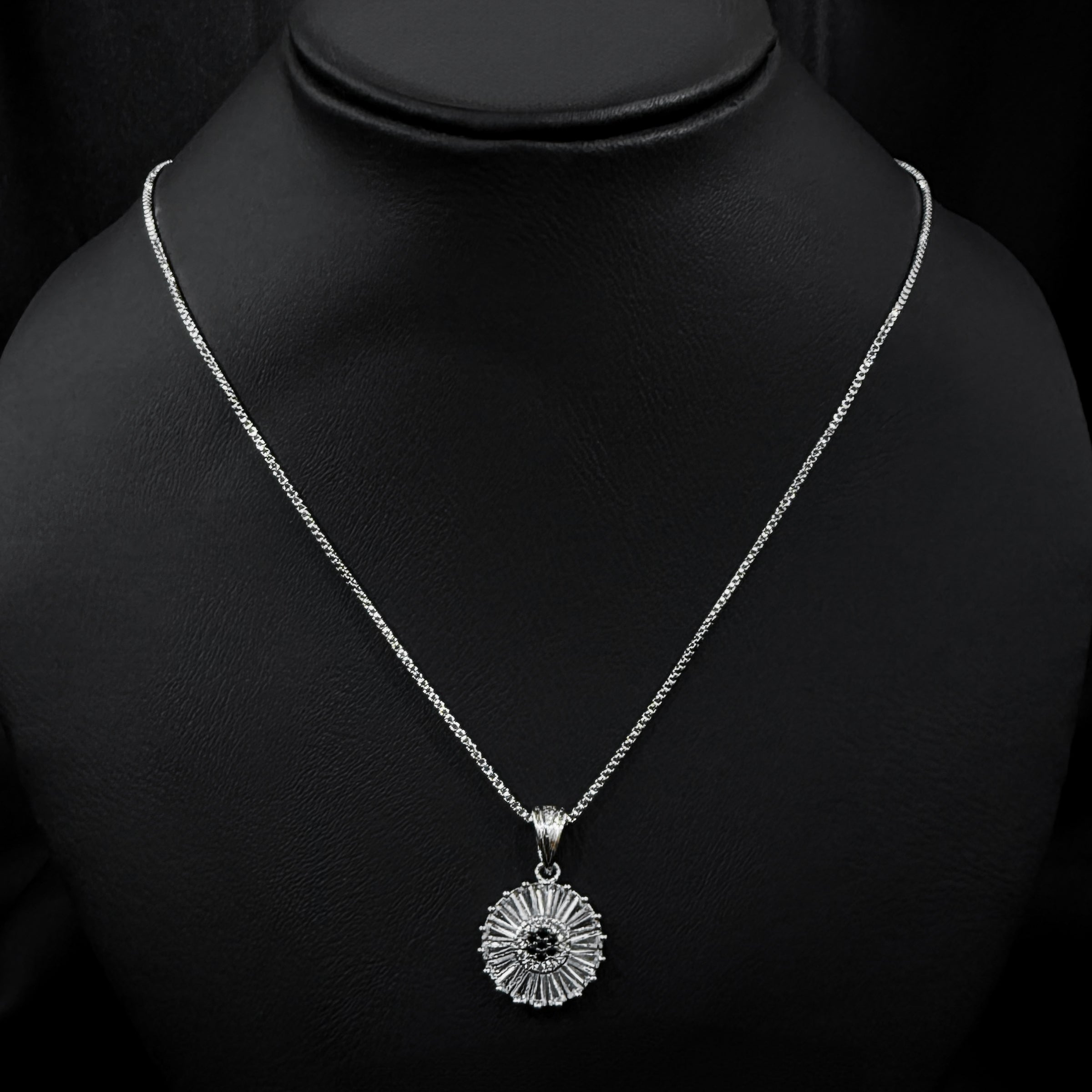 This stunning silver pendant necklace showcases intricate stone work, exuding elegance and sophistication. The single piece design is timeless and versatile, perfect for adding a touch of glamour to any outfit. Elevate your style with this must-have accessory from Wear To Fit.