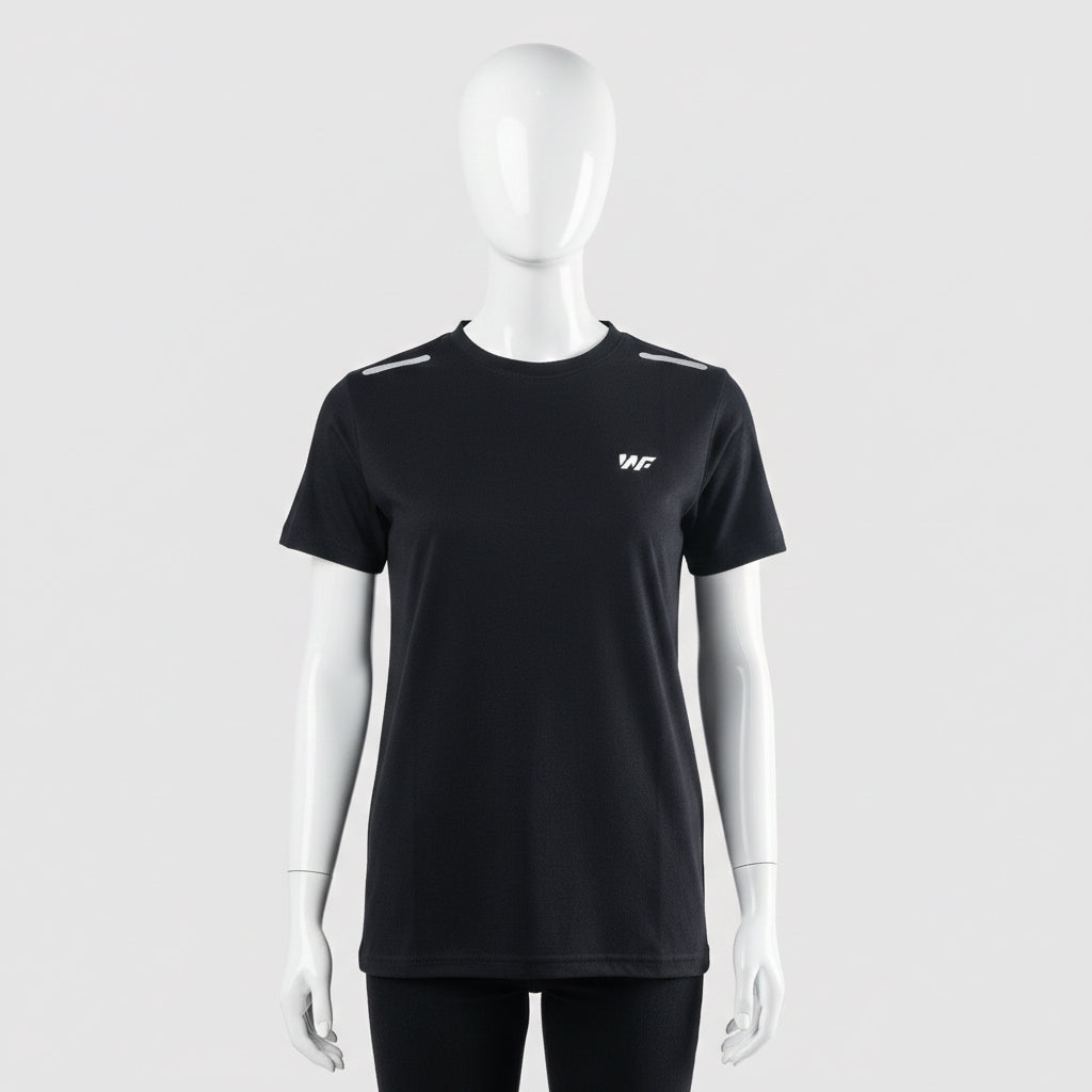 Upgrade your activewear with the Black Quick Dry T-Shirt featuring shoulder reflectors. Designed for performance and visibility, this tee keeps you dry and comfortable whether you're hitting the gym, running outdoors, or just enjoying casual wear.