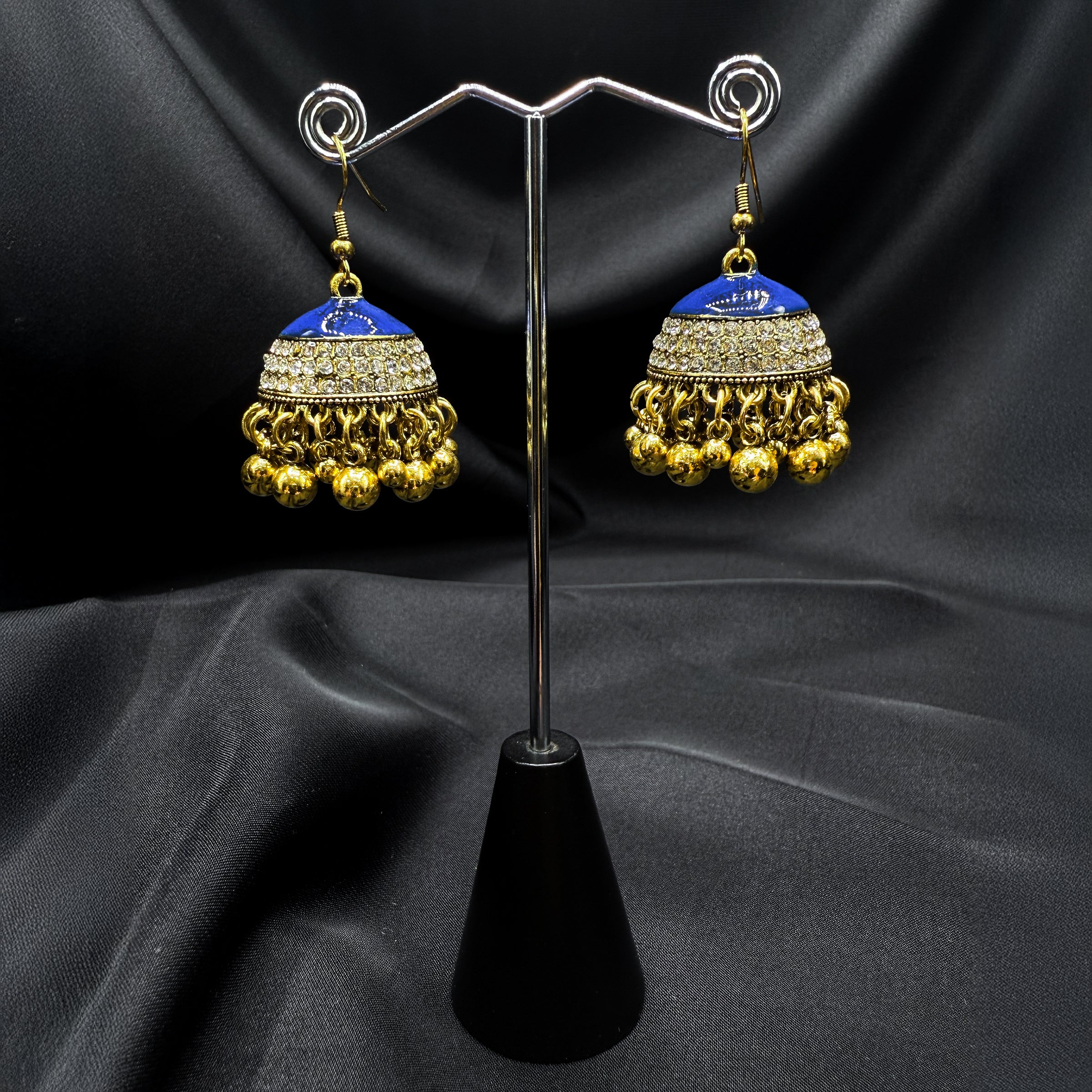 Elevate your look with these stunning Women's Jhumka Earrings in a mesmerizing blue hue. Crafted with embellished metal, these earrings exude elegance and charm. Perfect for adding a pop of color to any outfit, these statement earrings are a must-have accessory.