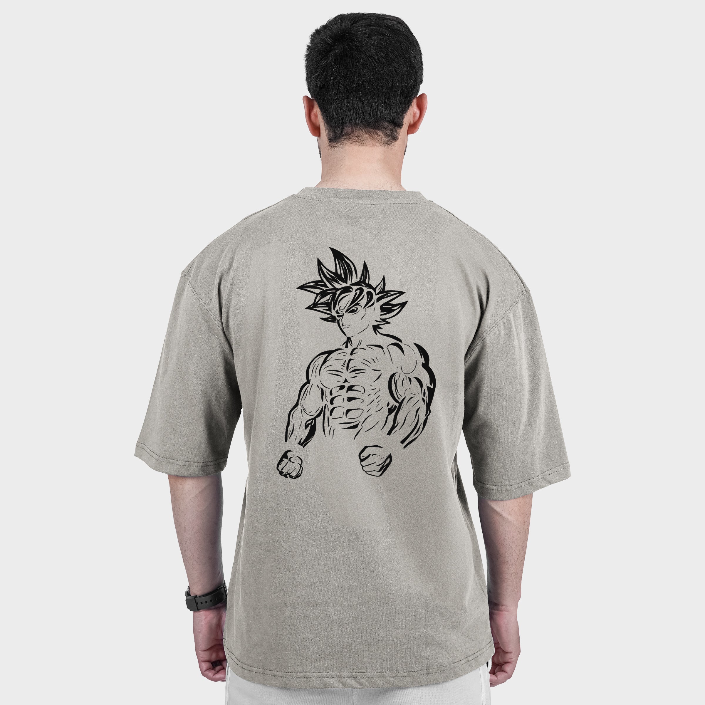 The front comes in a clean plain design for a minimal look, while the back features a bold Goku Dragon Ball graphic print that adds strong attitude and personality. Whether you're heading out, relaxing, or styling it with jeans or joggers, this black tee makes a statement effortlessly.