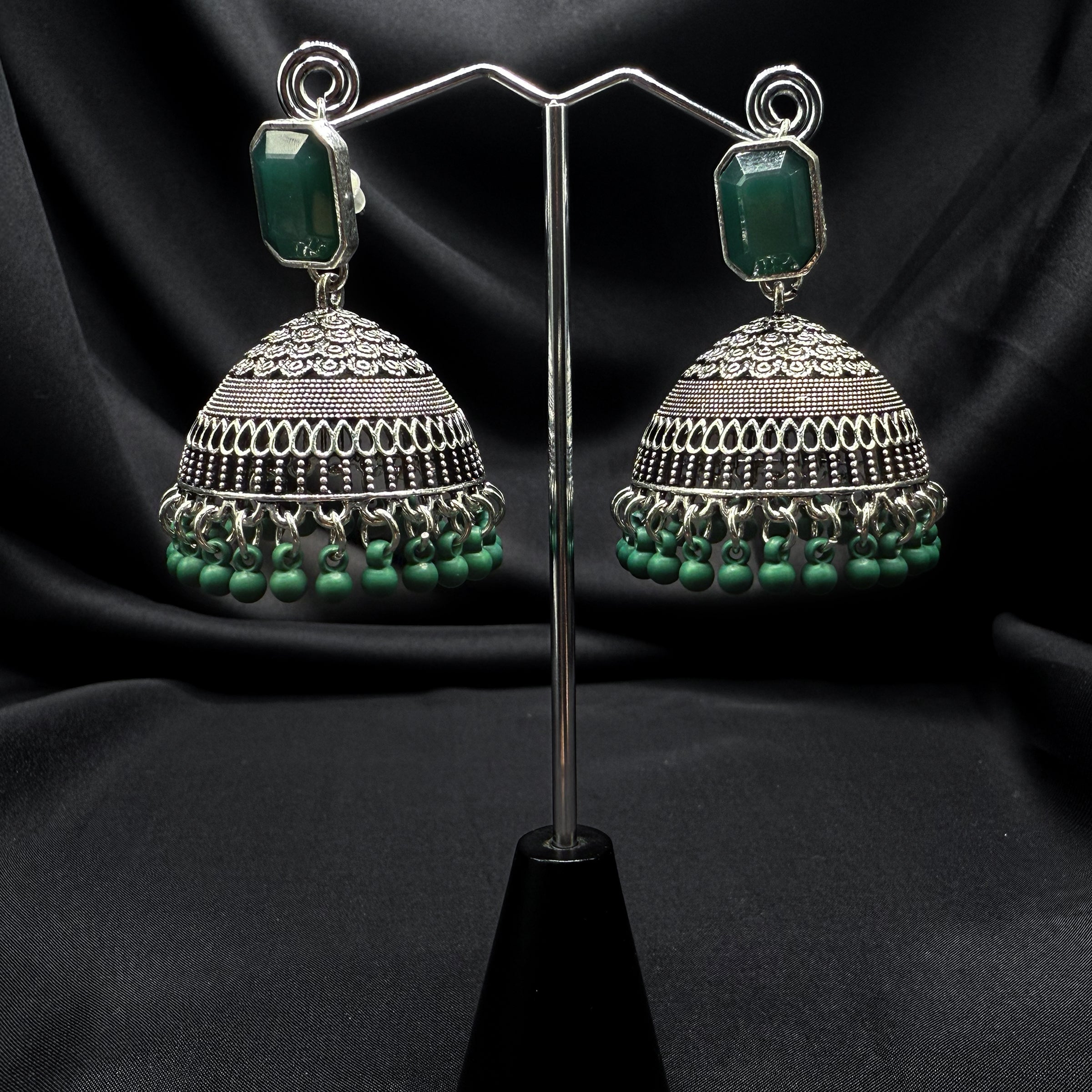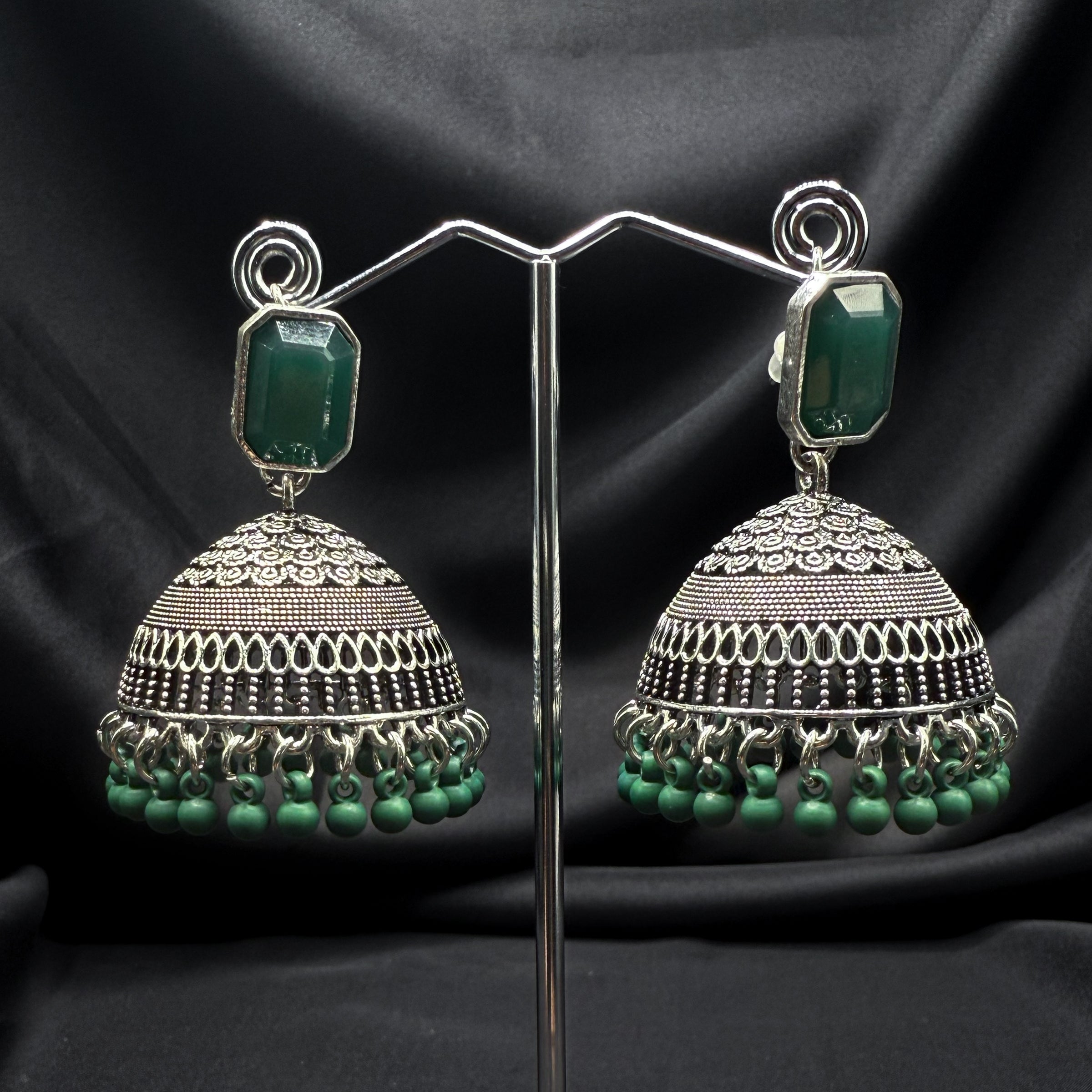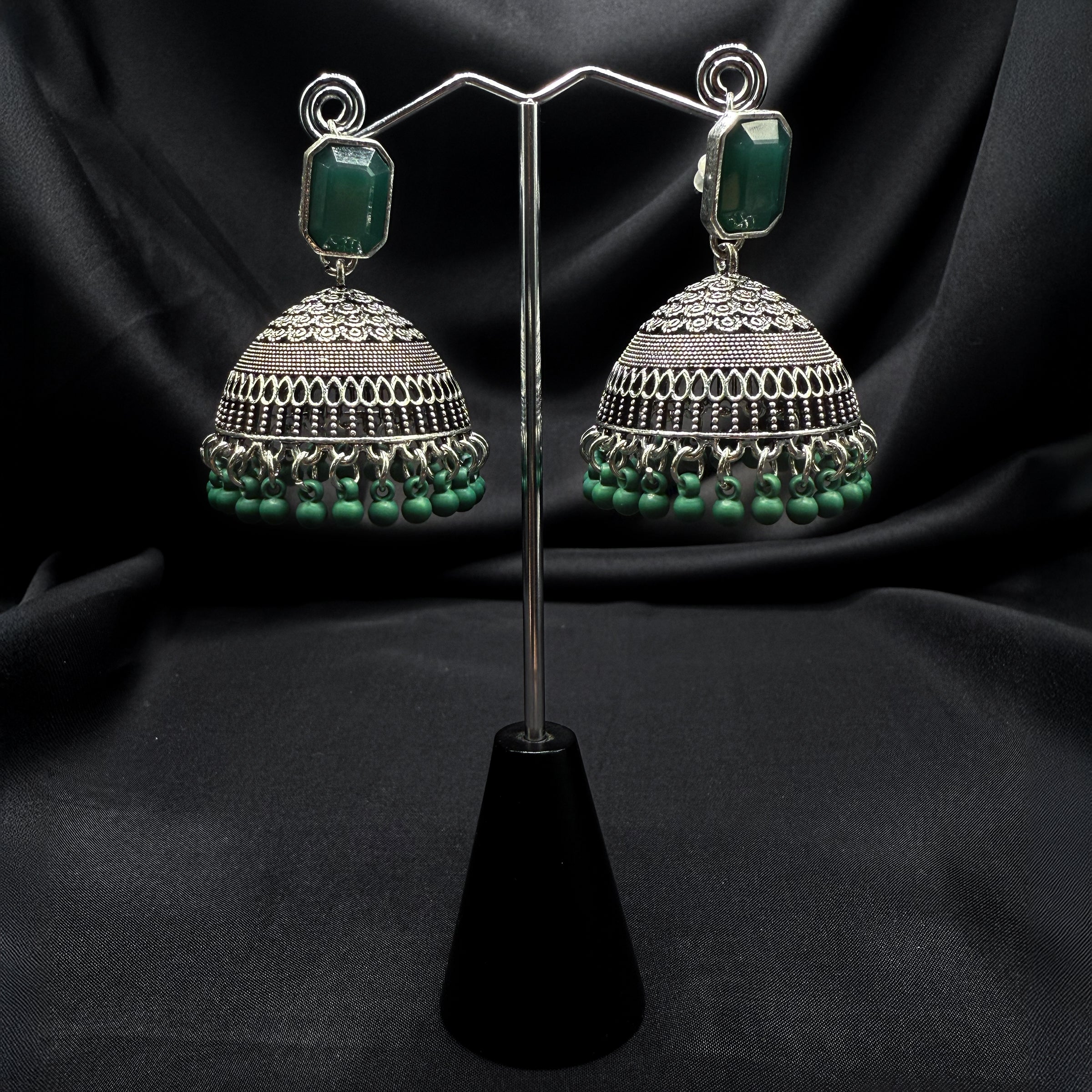 Elevate your style with these exquisite Women's Jhumka Earrings from Wear To Fit. Crafted from metal with intricate stone work in a stunning green hue, this pack of 2 earrings exudes elegance and charm. Perfect for adding a pop of color to any outfit, these earrings are a must-have accessory for any fashion-forward woman.