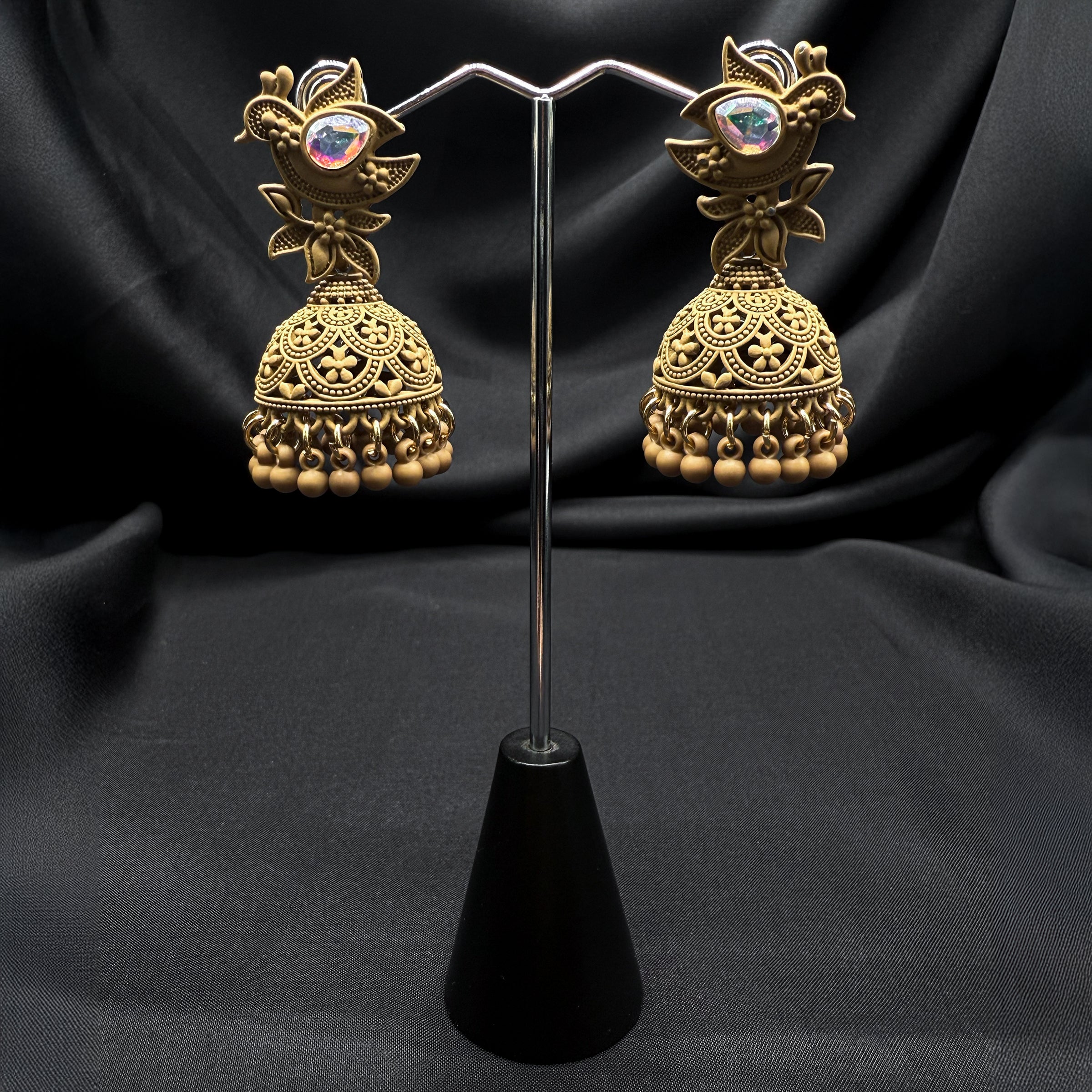 These stunning Women's Jhumka Earrings in a pack of 2 are a must-have accessory. Crafted with intricate stone work on metal, these gold-colored earrings exude elegance and timeless beauty. Perfect for adding a touch of traditional charm to any outfit. Elevate your style with these exquisite earrings from Wear To Fit.