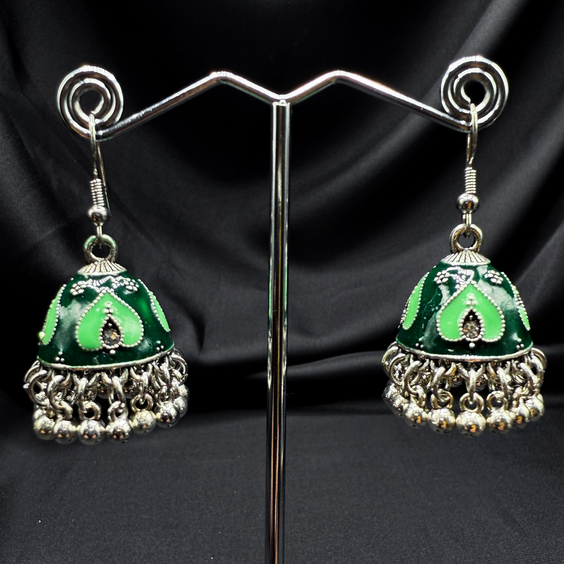 These stunning Jhumka Earrings from Wear To Fit offer a touch of elegance and sophistication to any outfit. Crafted with a silver coating on metal, this pack of 2 earrings features a unique green color type that adds a pop of color to your ensemble. Perfect for those looking for a standout accessory.