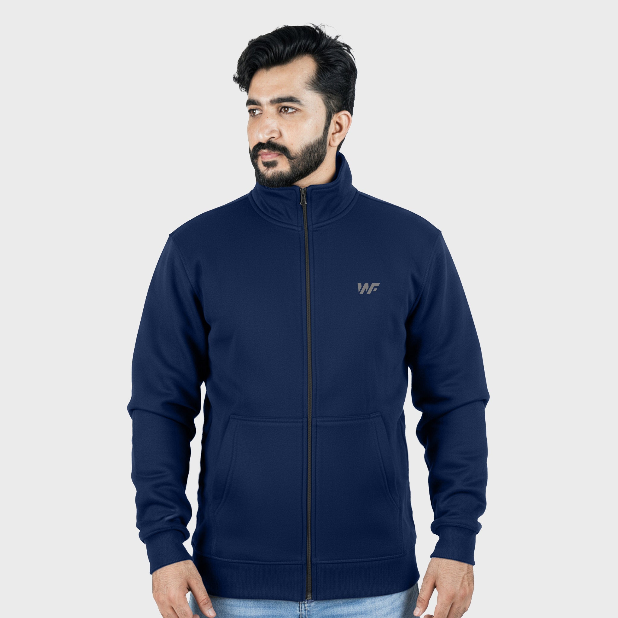 The Unisex Navy Blue Full Zipper Jacket is crafted from premium cotton fleece, offering a soft, warm, and comfortable feel. Its stylish adds a bold streetwear touch, making it perfect for casual outings or lounging. Designed with a full front zipper for easy layering and ribbed cuffs and hem for a secure fit, this jacket combines practicality with modern style.