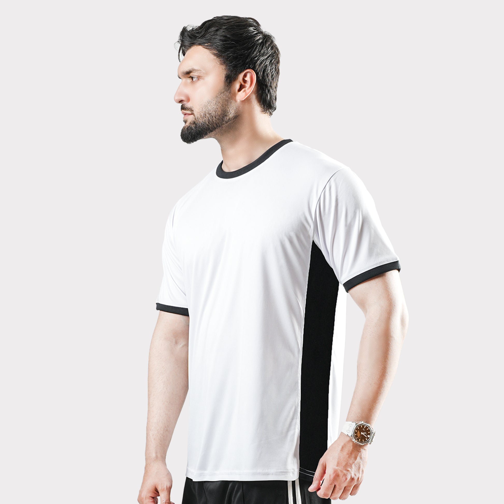 Elevate your casual style with our White Round Neck T-Shirt with Black Side Panel – a modern twist on a classic essential. Crafted for comfort and everyday wear, this t-shirt features a sleek black side panel design that adds a sporty edge and a flattering silhouette. Whether you're heading out for the day or relaxing at home, this tee brings both style and versatility to your wardrobe.